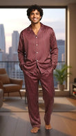 Super comfy 2 piece Men’s Mulberry Silk Loungewear pajama set, perfect for resting at home or lounging around the house all year round.