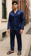 Super comfy 2 piece Men’s Satin Silk Loungewear pajama set, perfect for resting at home or lounging around the house all year round.